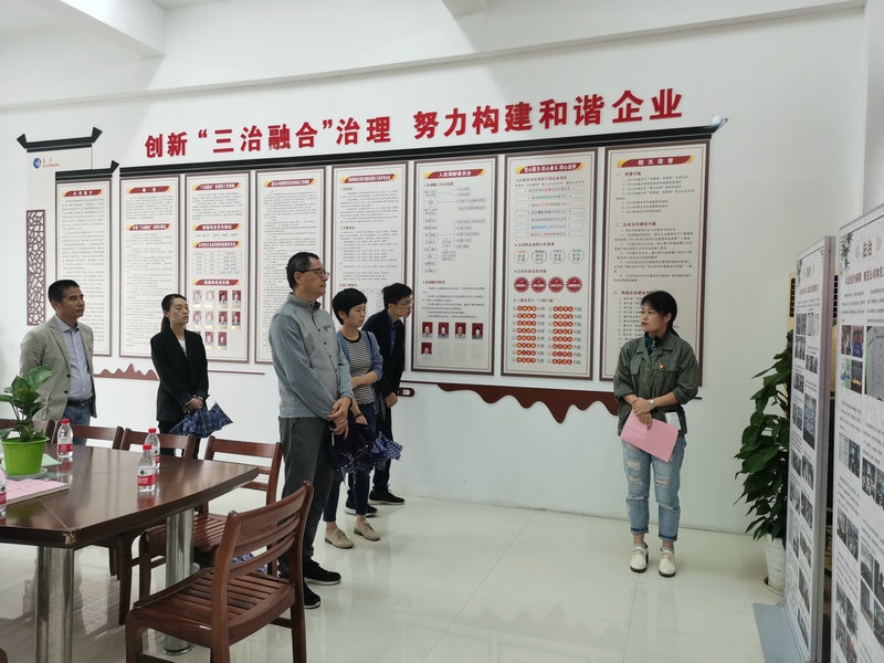 验收组一行实地考察检查了公司“三治融合”展示室和针织、染整员工心灵驿站,,,,,,听取了公司推进“三治融合”治理工作做法和成效的介绍,,,,,,查看了现场和有关材料,,,,,,从总体上对437必赢“三治融合”治理工作给予了充分肯定和好评。。。。。。。