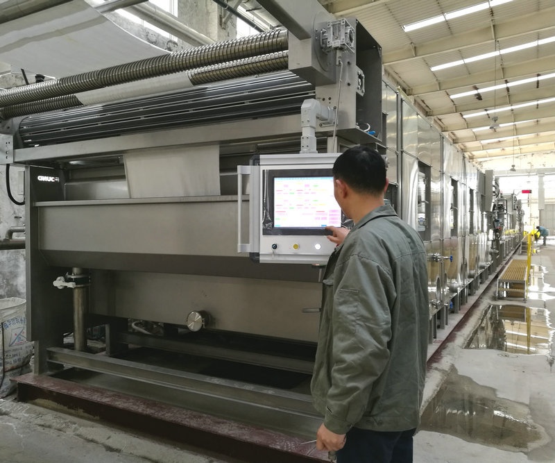 公司实施技改中投资的平幅水洗机和平幅煮漂机经前阶段紧张的安装调试,, ,,,于3月份正式投入生产 。。。。。 。。。平幅水洗机,, ,,,是供平幅织物洗涤用,是平幅织物练漂、丝光、染色、印花及树脂整理等加工设备的主要单元机械之一 。。。。。 。。。此外,还可应用平洗机浸轧化学药剂,以使织物达到漂白、提高染色牢度、增加花色鲜艳度、增加柔软手感等目的 。。。。。 。。。