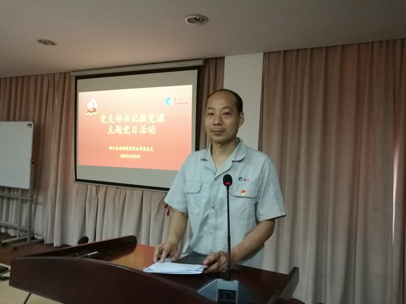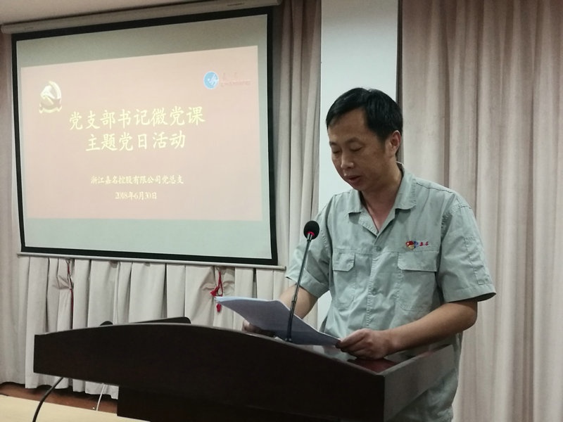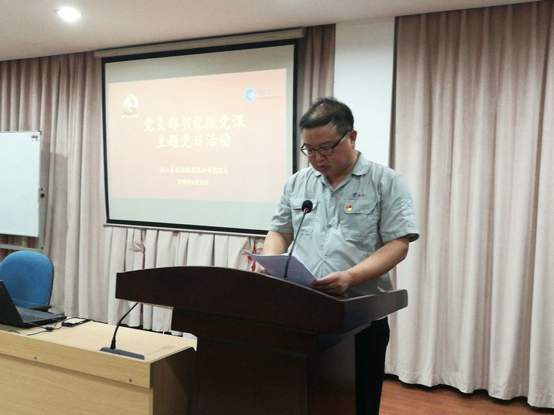 6月30日上午,,,, ,,,,在公司党总支在行政三楼党建活动中心,,,, ,,,,公司全体党员佩戴党徽聆听了四位党支部书记的微党课。。。。。党日活动由党建指导员吴纪联主持,,,, ,,,,公司党总支书记莫炳荣出席并讲话。。。。。
