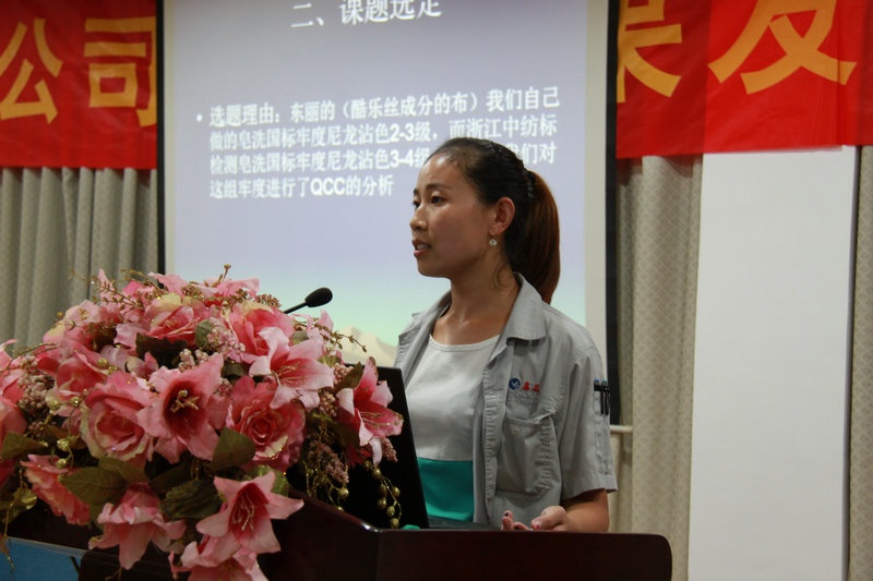 9月29日晚,,,,,,,公司召开了第十届(2016年上半年)QCC成果发表会,,,,,,,染整事业部等6个部门的11项QCC成果在会上发表。。。。。。经评委打分评选,,,,,,,染整事业部飞飞组的《去除丝光真丝布的擦白印》等3个成果获一等奖,,,,,,,染整事业部优化漂白组的《优化漂白布染色工艺》等3个成果获二等奖,,,,,,,品质管理部品管组的《降低客退货率》等5个成果获鼓励奖。。。。。。