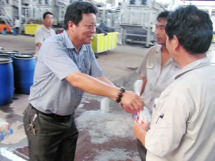 桐乡市总工会主席朱士良等领导来公司慰问高温下工作在一线的生产员工